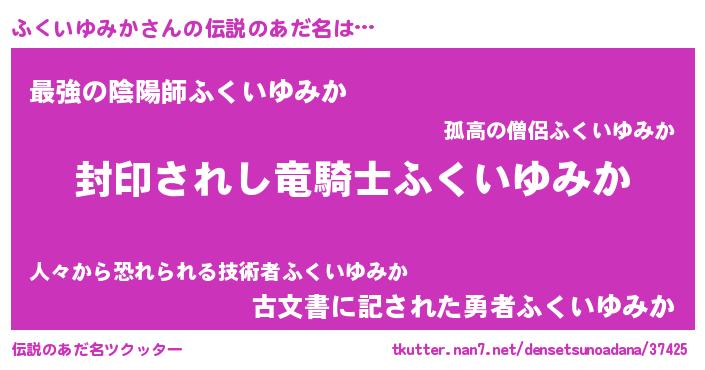 | 男性向けラノベタイトル風あだ名 | 『ふくいゆみかに滅ぼされるだけの簡単なお仕事です』 |