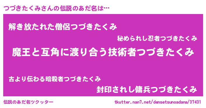 | 意味不明あだ名 | 『住所不定無職つづきたくみ(13歳)』 |