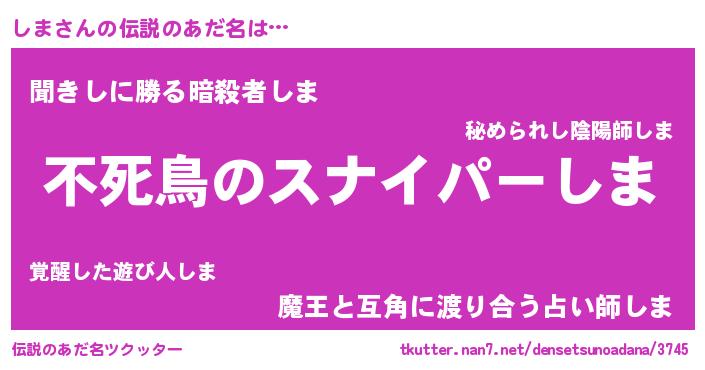 | ヒーロー風カッコイイあだ名 | 『スーパーシマ』『ネオシマ』 |