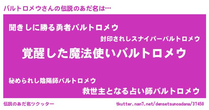 | 意味不明あだ名 | 『自称バルトロメウ』 |