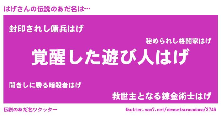 | ヒーロー風カッコイイあだ名 | 『仮面ハゲダー』『天弓騎士ハゲ』 |