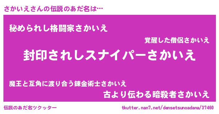 | ヒーロー風カッコイイあだ名 | 『スーパーサカイエ』『ネオサカイエ』 |