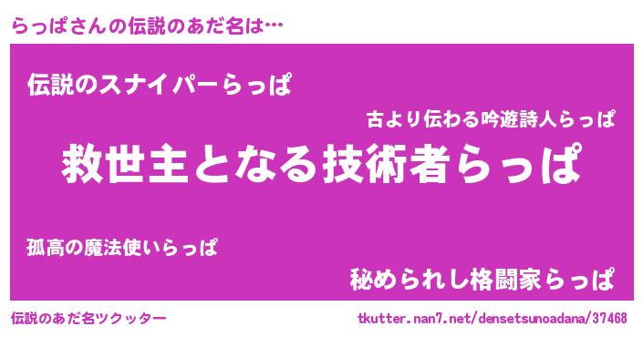 | 男性向けラノベタイトル風あだ名 | 『ノーゲーム・ノーラッパ』 |