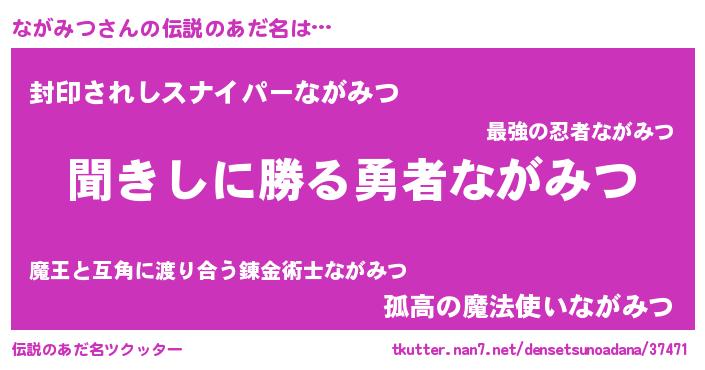 | 意味不明あだ名 | 『自称ながみつ』『永久保存ながみつ』 |