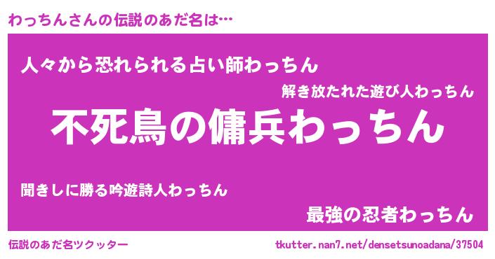 | 男性向けラノベタイトル風あだ名 | 『わっちんに滅ぼされるだけの簡単なお仕事です』 |