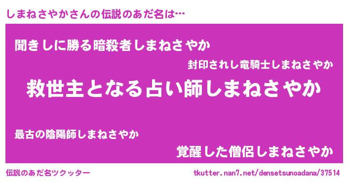 ヘコむあだ名 | 『しまねさやか(爆)』『しまっ子』 |