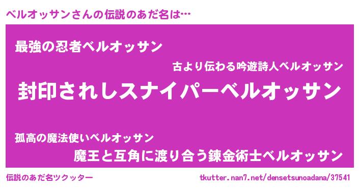 | 男性向けラノベタイトル風あだ名 | 『ベルオッサンに滅ぼされるだけの簡単なお仕事です』 |