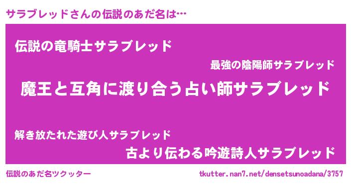| ヒーロー風カッコイイあだ名 | 『愛の使者サラブレッド』『仮面サラダー』 |