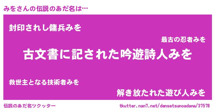 | ファンタジー風あだ名 | 『カークミヲラー』『ミヲディッシュ』 |