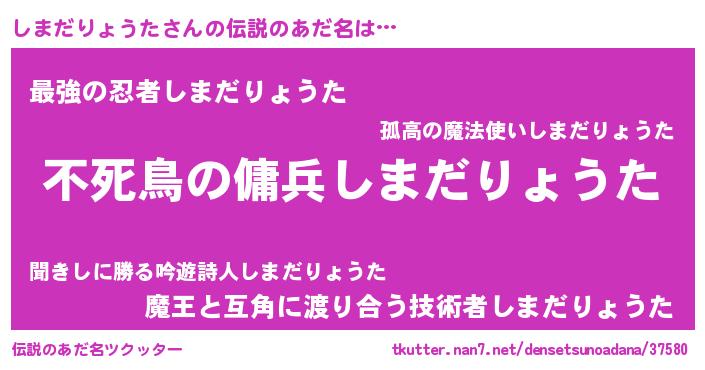 | 意味不明あだ名 | 『住所不定無職しまだりょうた(39歳)』 |
