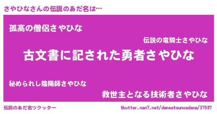 | ファンタジー風あだ名 | 『サヤディッシュ』『ゼサヤトゥ』 |