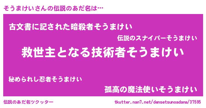 | ヒーロー風カッコイイあだ名 | 『慈愛の使者そうまけい』『黄金騎士ソウ』 |