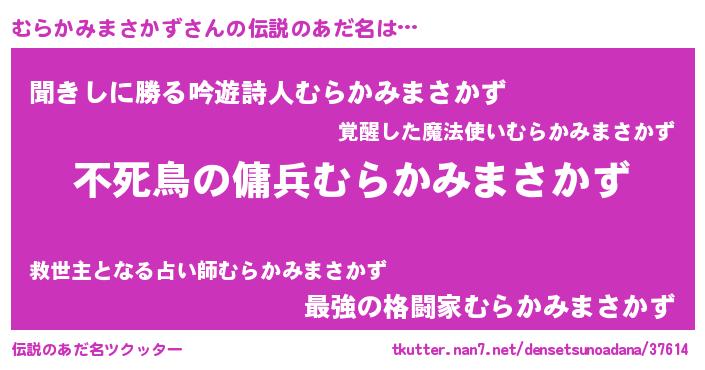 | ヘコむあだ名 | 『むらにゅー』『むらかみまさかず(小並感)』 |