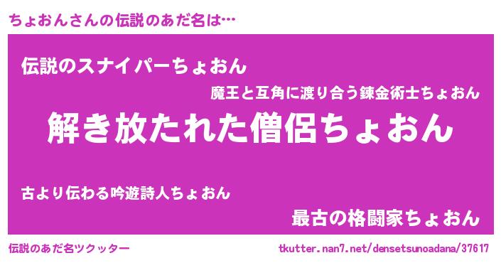| ヒーロー風カッコイイあだ名 | 『幻影騎士チョ』『スーパーチョオン』 |