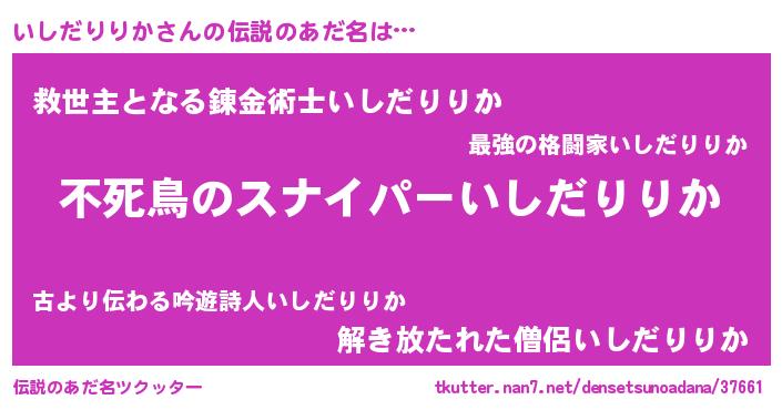 | 胡散臭い通販商品みたいなあだ名 | 『モテモテ間違いなし霊験あらたかなお札…その名も「いしだりりか」』 |