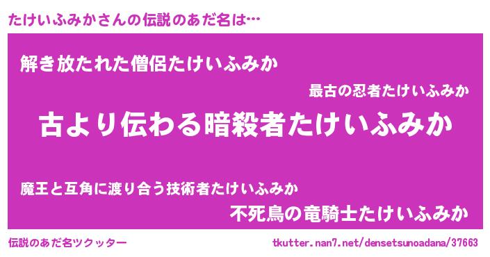 | 胡散臭い通販商品みたいなあだ名 | 『来世でも幸せになれる健康食品…その名も「たけいふみか」』 |