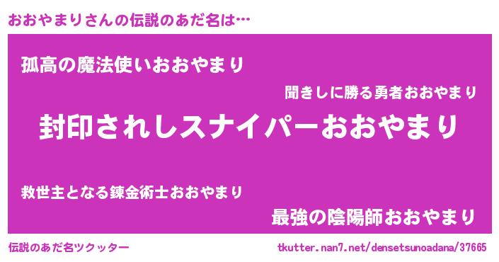 | 男性向けラノベタイトル風あだ名 | 『オオヤマリアートオンライン』 |