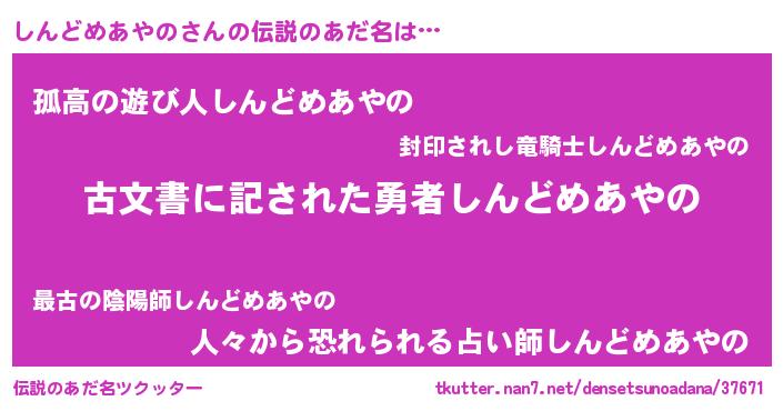 | ヘコむあだ名 | 『しんどめあやの(遠い目)』『しんっちょ』 |