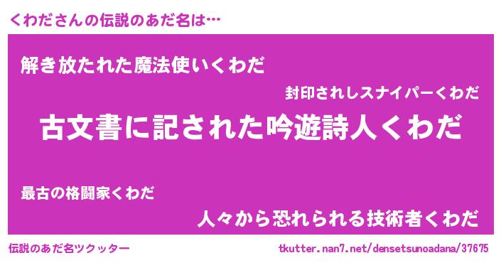 | ヘコむあだ名 | 『くわだ(小並感)』『くわお』 |