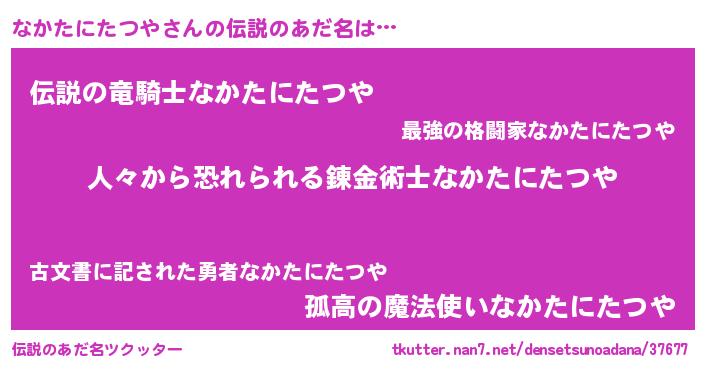 | 女子向けラノベタイトル風あだ名 | 『なかたにたつやなんてお断りですっ。』 |