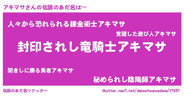 | 男性向けラノベタイトル風あだ名 | 『Re:アキマサから始める異世界生活』 |