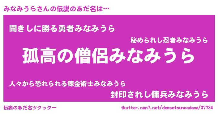 | ヒーロー風カッコイイあだ名 | 『黄金騎士ミナ』『ネオミナミウラ』 |