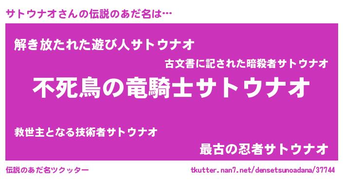 | ヒーロー風カッコイイあだ名 | 『スーパーサトウナオ』『黄金騎士サト』 |