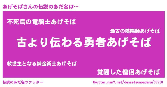 | ヒーロー風カッコイイあだ名 | 『ネオアゲソバ』『スーパーアゲソバ』 |