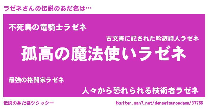 | ヒーロー風カッコイイあだ名 | 『黄金騎士ラゼ』『最強戦士ラゼネ』 |