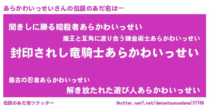 | ヘコむあだ名 | 『あらにー』『あらかわいっせい(笑)』 |