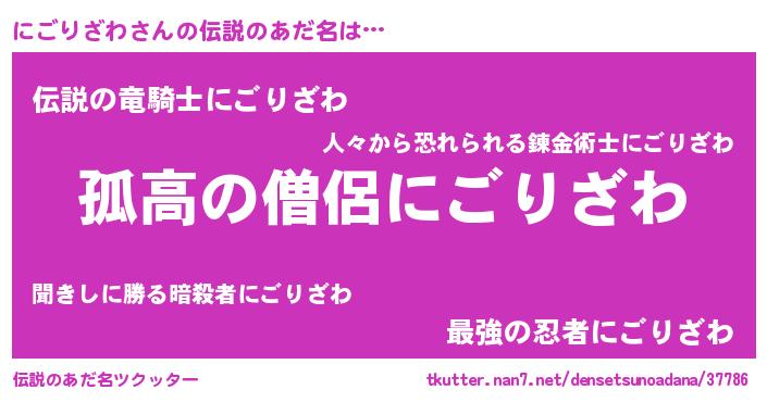 | ポケモン風あだ名 | 『ニゴセウス』『ヒニゴリザワ』 |