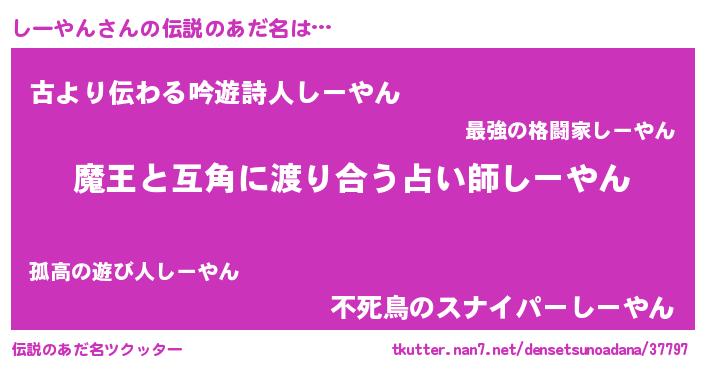 | ヒーロー風カッコイイあだ名 | 『慈愛の使者しーやん』『仮面シーダー』 |