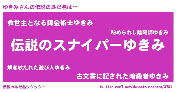| ヒーロー風カッコイイあだ名 | 『超時空戦士ユキミ』『スーパーユキミ』 |