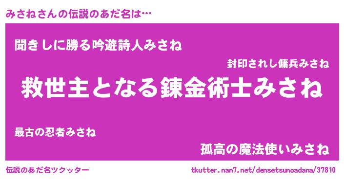 | 男性向けラノベタイトル風あだ名 | 『Re:みさねから始める異世界生活』 |