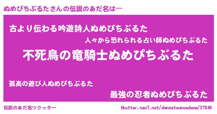 | ヒーロー風カッコイイあだ名 | 『スーパーヌメピチブルタ』 |