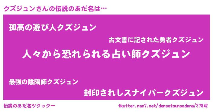 | ヒーロー風カッコイイあだ名 | 『友情の使者クズジュン』『仮面クズダー』 |