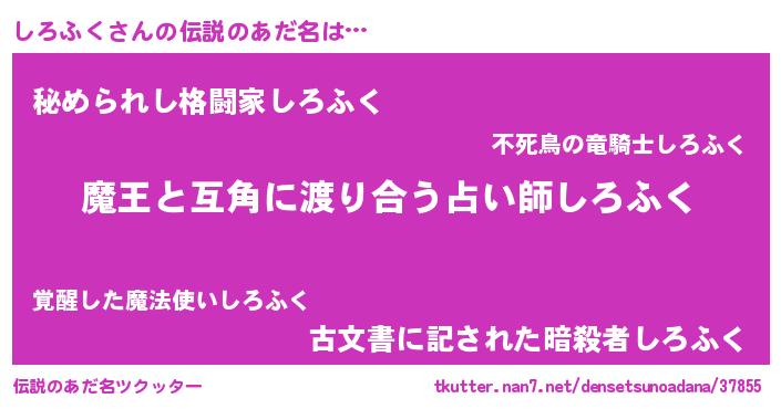 | ヒーロー風カッコイイあだ名 | 『愛の使者しろふく』『究極戦士シロフク』 |