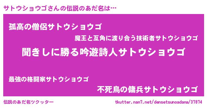 | 意味不明あだ名 | 『自称サトウショウゴ』 |