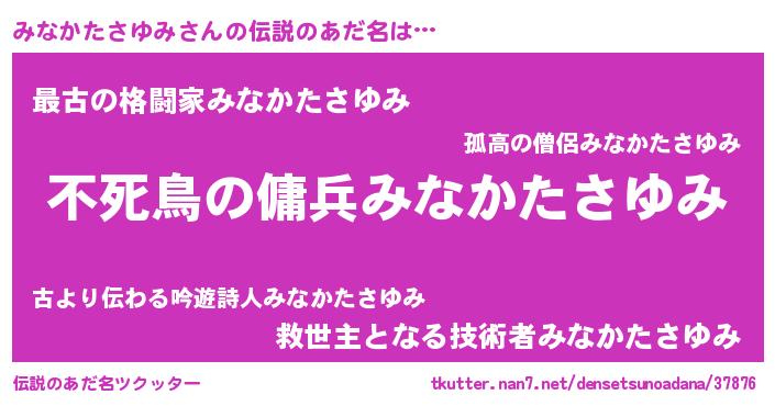 | 女子向けラノベタイトル風あだ名 | 『みなかたさゆみ姫と円卓の騎士』 |