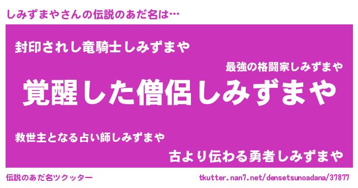 | ヒーロー風カッコイイあだ名 | 『炎刃騎士シミ』『スーパーシミズマヤ』 |