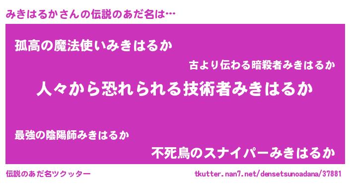 | 胡散臭い通販商品みたいなあだ名 | 『100人中100人が認めたマグネット磁石…その名も「みきはるか」』 |