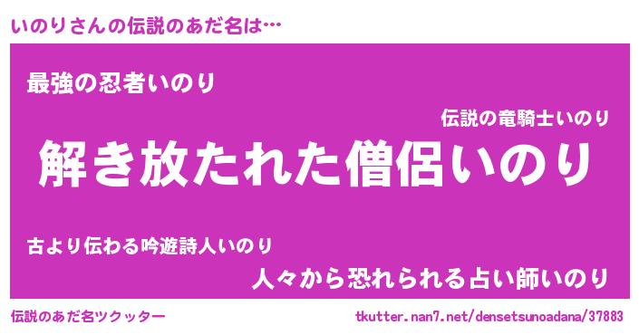 | 女子向けラノベタイトル風あだ名 | 『いのりの卵を拾いまして』 |