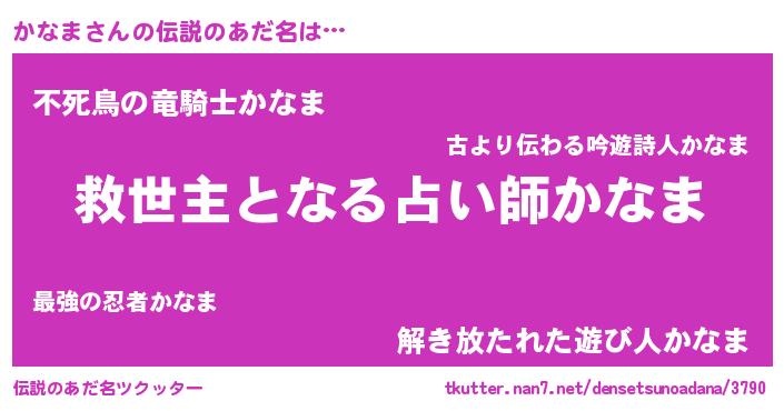 | ヒーロー風カッコイイあだ名 | 『慈愛の使者かなま』『スーパーカナマ』 |