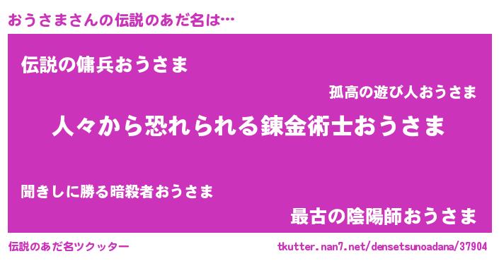 | 男性向けラノベタイトル風あだ名 | 『おまえをオタクにしてやるから、俺をおうさまにしてくれ! 』 |