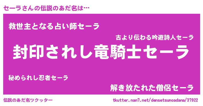 | ヒーロー風カッコイイあだ名 | 『仮面セーダー』『スーパーセーラ』 |