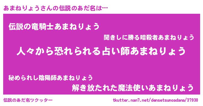 | 意味不明あだ名 | 『住所不定無職あまねりょう(43歳)』 |