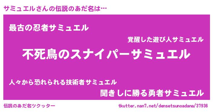 | 男性向けラノベタイトル風あだ名 | 『サミュエルの憂鬱』 |