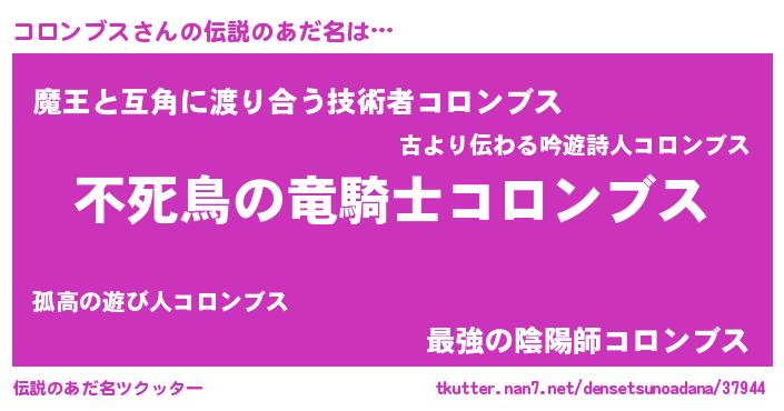 | 男性向けラノベタイトル風あだ名 | 『コロンブスの憂鬱』 |