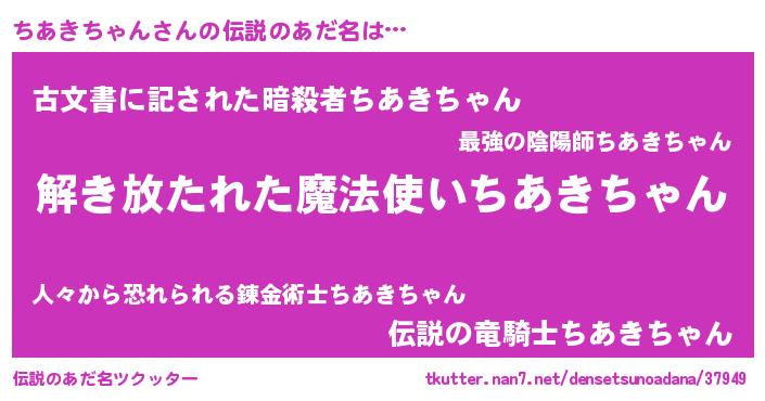 | 意味不明あだ名 | 『住所不定無職ちあきちゃん(12歳)』 |