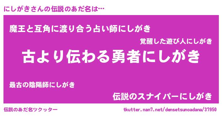 | 男性向けラノベタイトル風あだ名 | 『にしがきという概念が存在しない退屈な世界 』 |